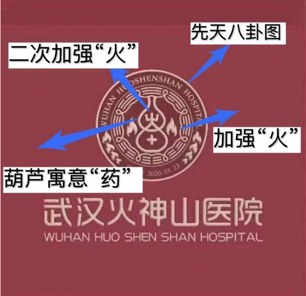 2:“火神山”LOGO里面有個“葫蘆”,為什么要用葫蘆啊?在道教傳統(tǒng)里面,葫蘆有個很神奇的功能就是能裝下所有的“陰邪”,葫蘆還有個神奇的功能就是專門治病用的!我們經(jīng)常看到,古代放藥都是把藥放到葫蘆里!所以“葫蘆”慢慢地就演變成了“治療疾病”的“代言人”了。
