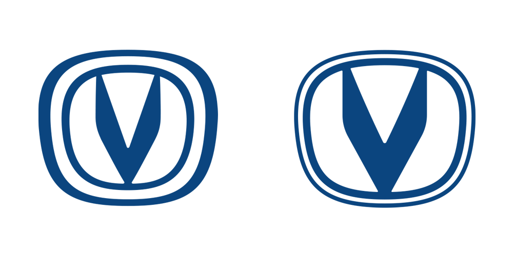 此次優(yōu)化設(shè)計(jì)再次增強(qiáng)了「V」字符號的識別性,原來比較厚實(shí)的雙線外環(huán)邊框不僅全面瘦身,而且兩條線之間的距離變得更緊湊。中心位置的空間更大,所以「V」字符號有了更大的展示空間。